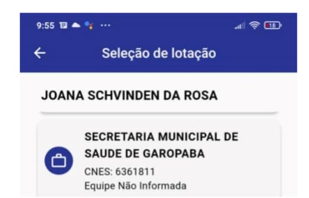 - Após o login, selecione a lotação (estabelecimento de saúde) à qual está vinculado.