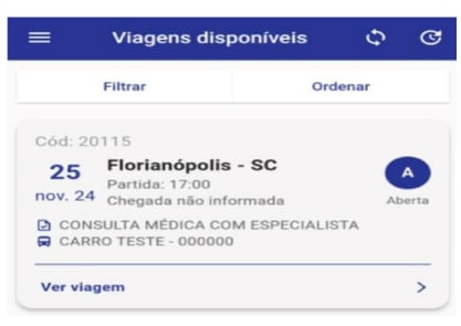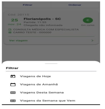 Ao clicar na opção de filtros, o profissional poderá visualizar as demais viagens de acordo com os critérios selecionados.