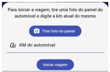 Ao clicar no botão “Iniciar viagem”, o profissional deverá tirar uma foto do painel do veículo e informar o KM inicial.